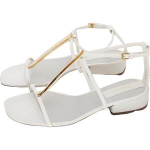Franco Sarto Misty T-Strap Square Toe Sandals White Leather Women's US 7.5M