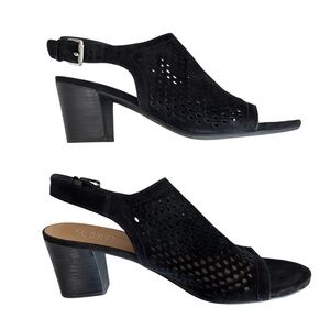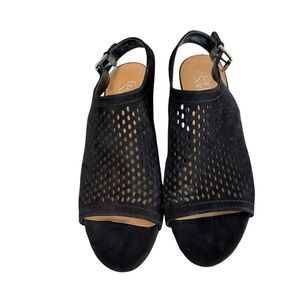 Franco Sarto Monaco2 Womens Dress Sandal Sz 9 Slingback Laser Cut Black Leather