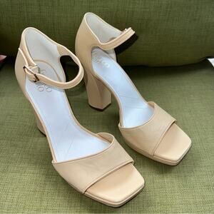 Franco Sarto NEW Dima Leather Heels Open Toe and Ankle Strap Beige Size 9.5