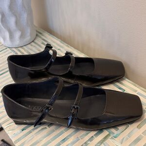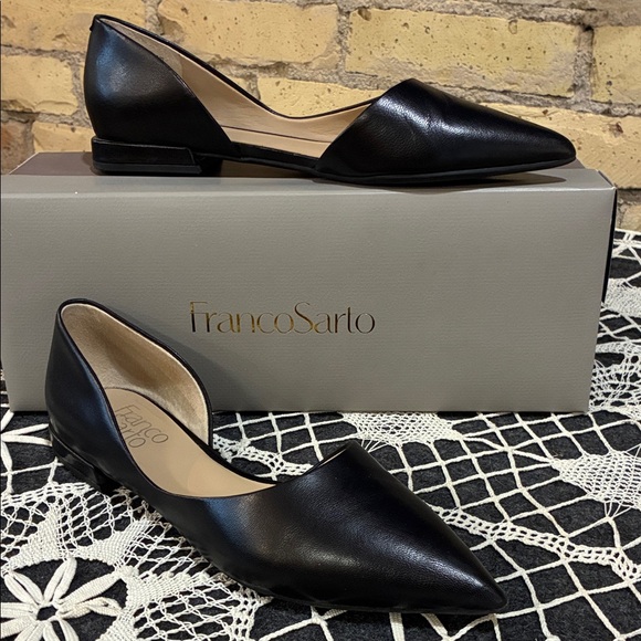 Franco Sarto Neiman Black Leather Pointed Flats. Size 6.5