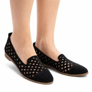 Chic black flats with a pointed toe. Sleek and stylish design. Ideal for everyday wear.