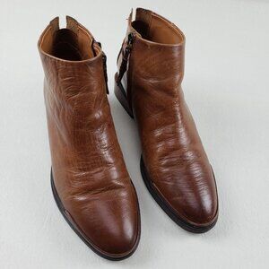 Franco Sarto Nemi Ankle Boot Womens 9 Brown Leather Distressed Side Zip Western