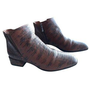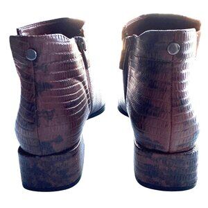 Franco Sarto Nico Brown Faux Snake Leather Ankle Booties Side Zipper Size 8