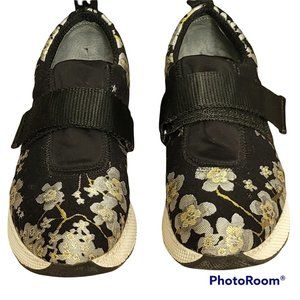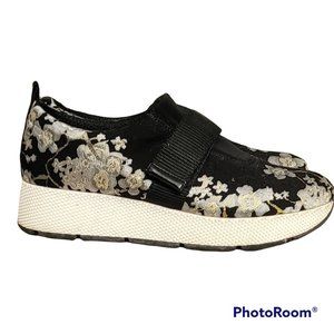 Franco Sarto Odella Slip-On Black Metallic Floral Comfort Sneaker Size 7.5