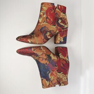 Elevate your wardrobe with the sophisticated Franco Sarto 'Olympia' ankle bootie in size 8.5M. This stylish block-heel boot features a sleek silhouette, a convenient side zip closure, and is crafted with premium materials (often black leather or embroidered tapestry). The sturdy block heel offers chic height and all-day stability. Perfect for dressing up jeans or pairing with a skirt, the Olympia bootie is a versatile, must-have addition to your fall and winter fashion. Excellent pre-owned condition.