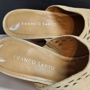 Franco Sarto open toe slip on wedge shoes. Size 7.5 medium. Leather uppers. 4" heels.