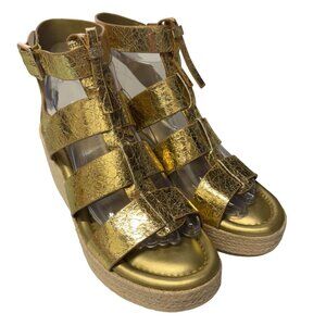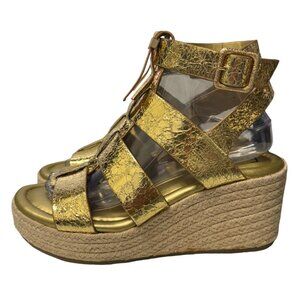 Franco Sarto Palms Espadrille Wedge Sandals Womens 8.5 M Gold Buckle Gladiator
