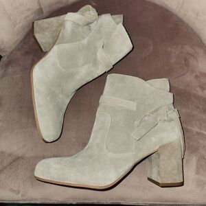 Franco Sarto Pamela Leather Suede Block Heel Square Teo Side Bow boots size 8.5M