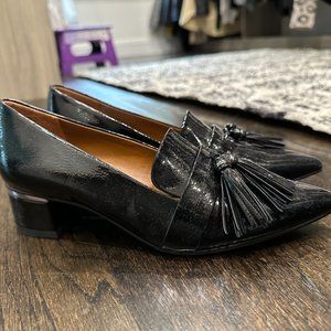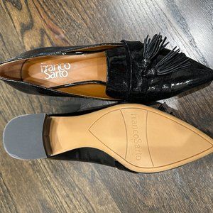 Franco Sarto Patent Leather Loafer Heel with tassel details. Worn once, perfect condition!