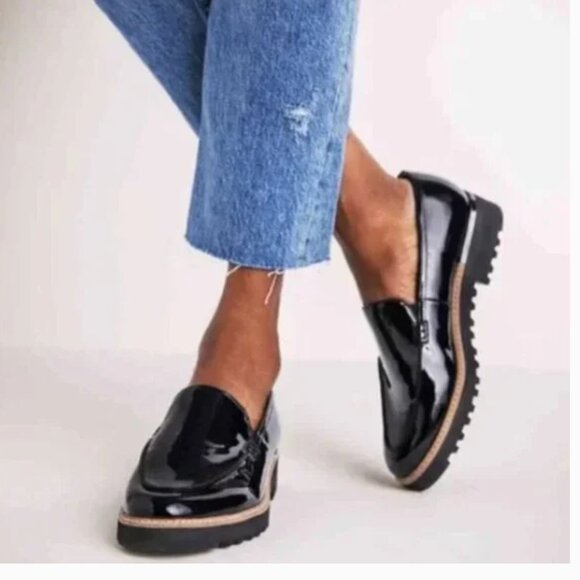 Franco Sarto loafers, Franco Sarto shoes, patent loafers, lug sole loafers, chunky loafers, women’s loafers, black patent loafers, platform loafers, office shoes women, trendy loafers, workwear shoes, casual chic loafers, modern loafers, slip-on shoes women, comfortable loafers.
