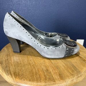 Franco Sarto Paver Gray Suede Heels with Buckle, Size 9.5