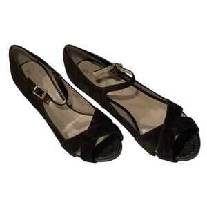 Franco Sarto Peep Toe Heels Valita Women 7M Shoes Dark Brown Suede Pump READ