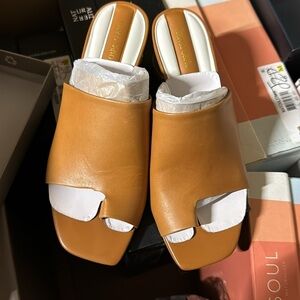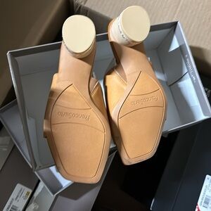 Make summers fancy by slipping into the Franco Sarto Pisa slide sandal. The leather upper with a toe loop is juxtaposed with a cylindrical block heel with metallic detailing. The ergonomic insole with contoured padding at pressure points makes walking in this slip-on a breeze.