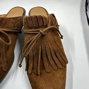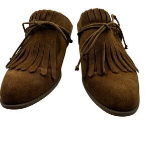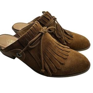 Franco Sarto Ranita Suede Fringe Mule Slip-On Brown Heels Size 8M