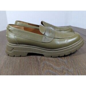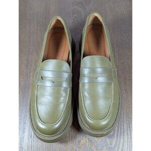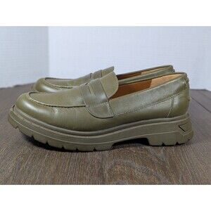 Franco Sarto Reza Loafer Women's 8 Olive Green Leather Slip On Platforms