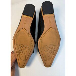 FEATURES/ACCENTS: Runs small. Pointed cap toe. Snip toe, classic tassels, and metallic accents. Black color. Slip on style.