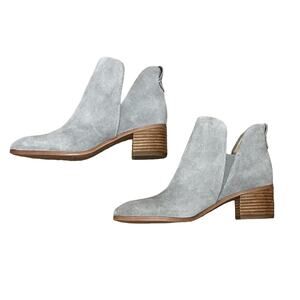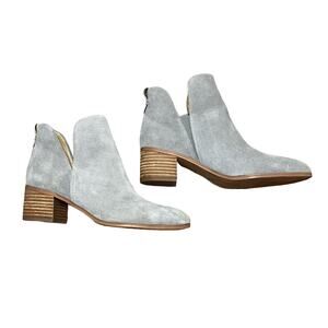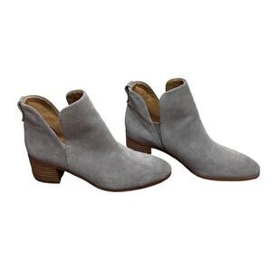 Franco Sarto Roar Suede Leather Booties Gray Heeled Ankle Boots Side Cut Out