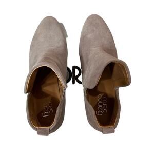 Franco Sarto Roar Suede Leather Booties Gray Heeled Ankle Boots Side Cut Out. Leather upper. Style name Roar.