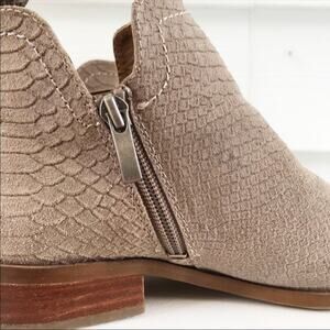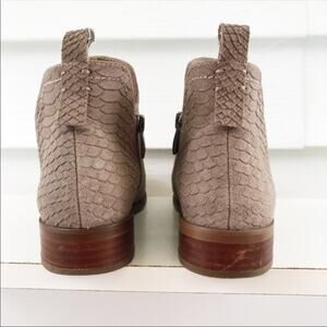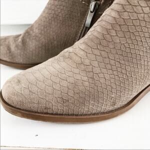 Franco Sarto Rocky Ankle Booties Small Heel Boots Scaly Textured Suede Taupe