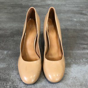 Franco Sarto Round Toe Nude Patent Leather Chunky