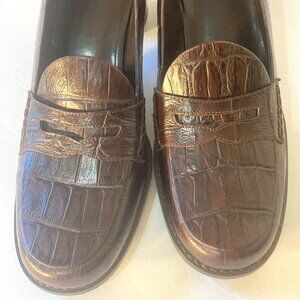 Franco Sarto SX 10N NWOT Brown leather crocodile high block heel loafer