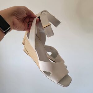 Franco Sarto Samina Cream Leather Wedge Sandals 8.5M Neutral Heels