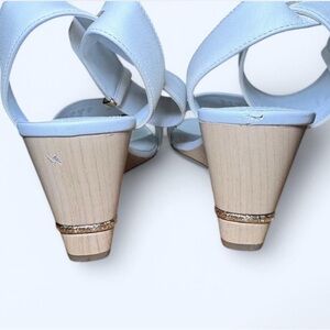 Preowned, please look at all pictures. Left back of heel has a scratch. Other than the scratch, these are in good shape. The leather is soft and the shoes are clean.