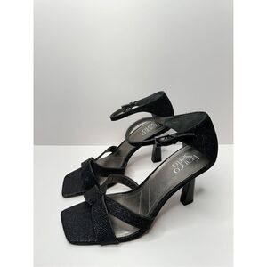 Franco Sarto Sandals Size 9 Black Leather Ankle Strap Sparkly Dress Heels NEW