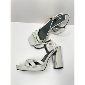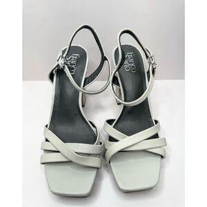 Franco Sarto Sandals Size 10 Gray Leather Ankle Strap Open Toe Block Heel
