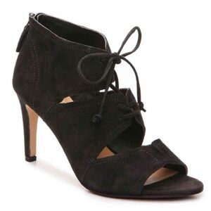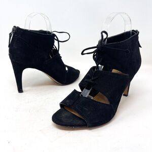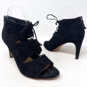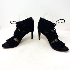 Franco Sarto Shawnee Sandals Black Genuine Suede Heeled Lace Up Leather Size 8.5