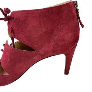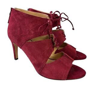 Franco Sarto Shawnee Womens Red Leather Suede Cage Heels Peep Toe Shoes sz 8