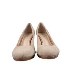 Used Franco Sarto Shoes Womens 7.5 Pump Platform Fashion Suede Beige Round Toe Orlina