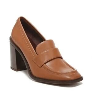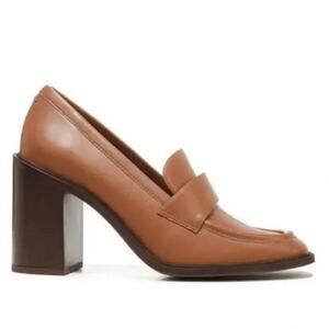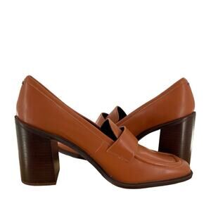 Franco Sarto Shoes Women's Size 12M Leather Chunky Block High Heels Loafers Brown