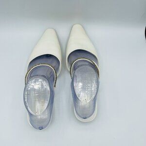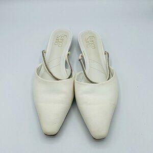 Franco Sarto Shoes Womens Size 7 M White Leather Slip On Mule Heel Pointy Sandal