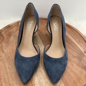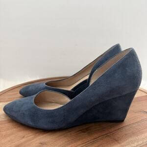 Franco Sarto Shoes Womens Size 8.5 Blue Suede Felice Wedge Pumps Pointed Toe