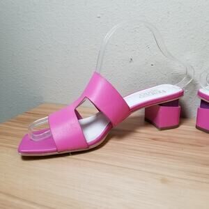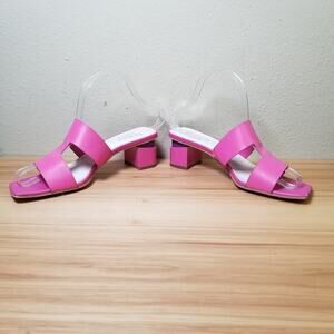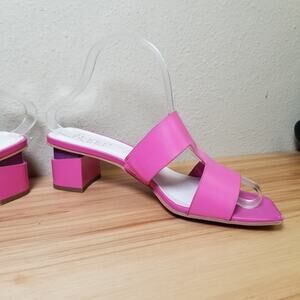 Franco Sarto Size 7.5 Kirsi Block Heel Slide Sandal Hot Pink Leather Barbiecore