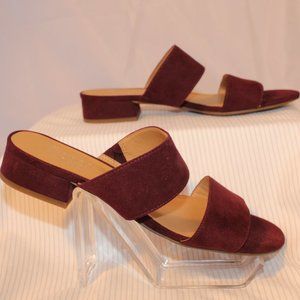 Franco Sarto Size 7.5M Silas Maroon/Burgundy Faux Suede Slide Low Heeled Sandals