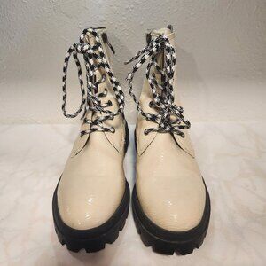Franco Sarto Size 8.5M Robbie Combat Boots Putty Color Lace Up and Zip Closure