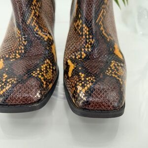 Chic snake print design. Block heel for comfort. Perfect for any occasion.
