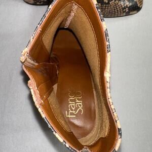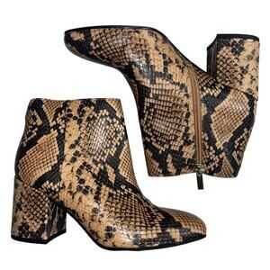 Franco Sarto Snake Print Ankle Boots Sz 7.5M Tan Black Block Heel Leather Bootie