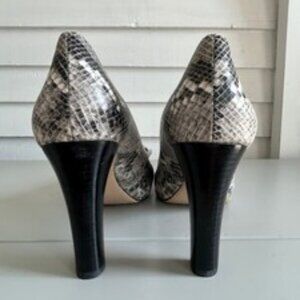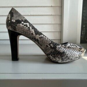 Franco Sarto Snake Print Peep Toe Platform Pumps Gray Stacked Heel Size 10M