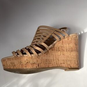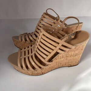 Franco Sarto Sombre Wedge Sandal in Beige Strappy Gladiator Sandals Spring 9