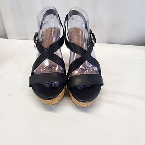 Franco Sarto Stallion Wedge Sandal Black Leather Size 9.5