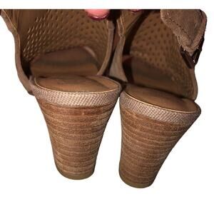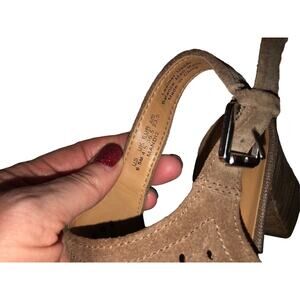 Franco Sarto Suede Leather Wedge Sandals Perforated Taupe Ankle Strap
