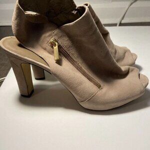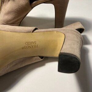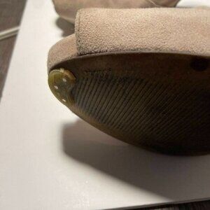 Franco Sarto Suede Tan Leather Peep Toe Chunky Heel Shoe Sandals