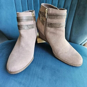 Franco Sarto Suede Wedge Ankle Boots - Taupe - Women's Size 8.5M