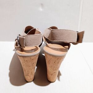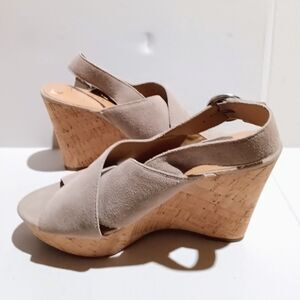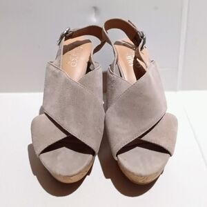 Franco Sarto Suede Wedge Sandals-Size 8-Open Toe-Adjustable Ankle Strap-Taupe