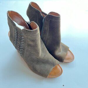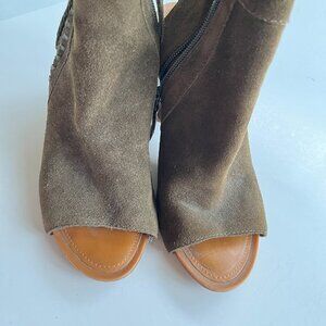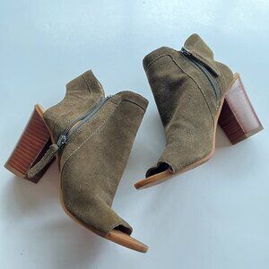 Franco Sarto “Sylvania” Booties Size 7M Olive Green Suede Heeled Open Toe