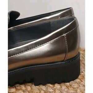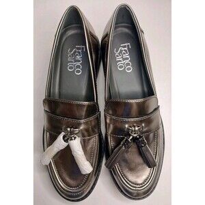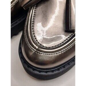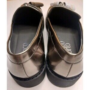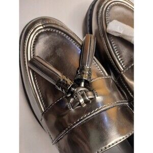Franco Sarto Sz 5.5 Carolynn Loafers Metallic Pewter Silver w/ Tassels Lugg Sole