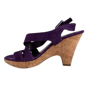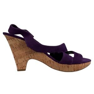 Franco Sarto Talk Cork Heels Slingback Sandal Purple Sz 10